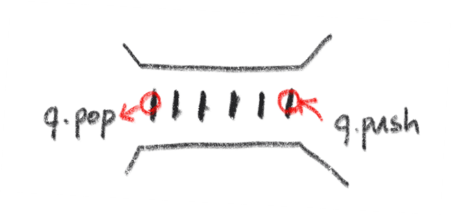q.pop(); // Queue에 제일 처음 들어간 값을 삭제하였으므로 [1, 2, 3]